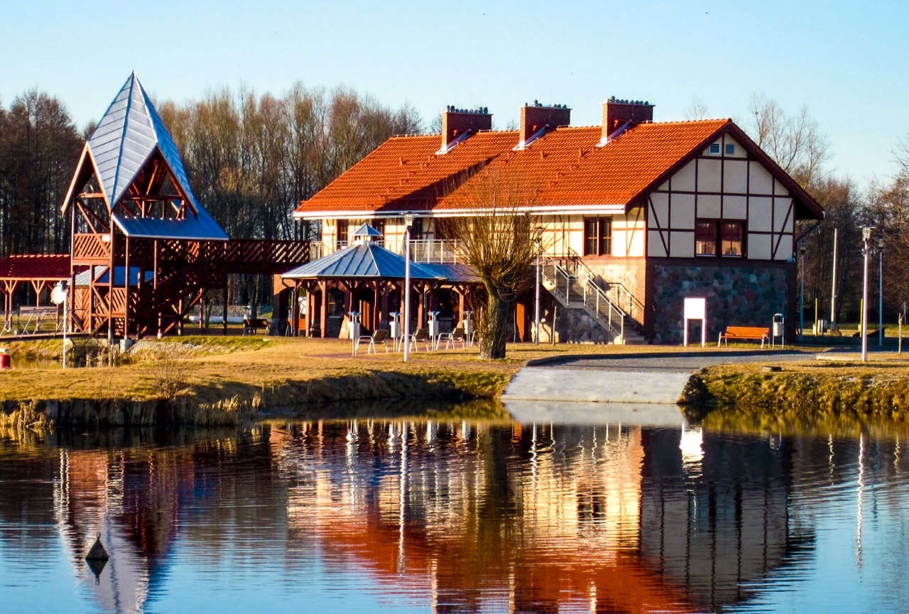 | 0,9 | Po prawej stronie drewniany budyneczek z czerwonym dachem, przy samym brzegu – baza rybacka Węgle. |