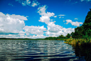 | 16,0 | Na wschodnim brzegu zatoka Drela, ujście rzeki Drela (spławna tylko wiosną), przy wejściu do zatoki na cyplu po lewej stronie dogodne miejsce na biwak w nieistniejącym gospodarstwie, w mirabelkowej alei, głęboko do samego brzegu; w głębi zatoki prawdziwy raj roślinności wodnej, brzegi niedostępne. |