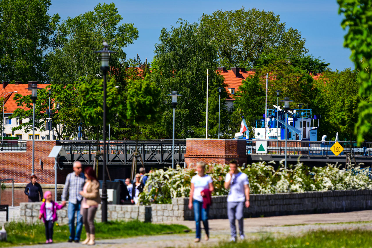 5,7Pierwszy z wyremontowanych, elbląskich mostów zwodzonych – Most Niski, płyniemy wzdłuż nabrzeża Bulwaru Zygmunta Augusta, przy którym można przycumować kajak. Obok przystanek statków Żeglugi Ostródzko Ostródzko-Elbląskiej, skąd statki pasażerskie wyruszają w rejs szlakiem Kanału Elbląskiego.